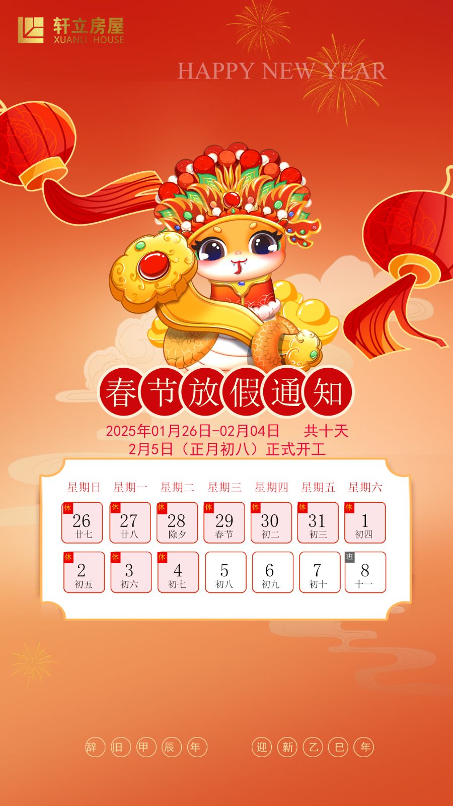 軒立房屋2025年春節(jié)放假通知:喜迎新春,共賀佳節(jié)!