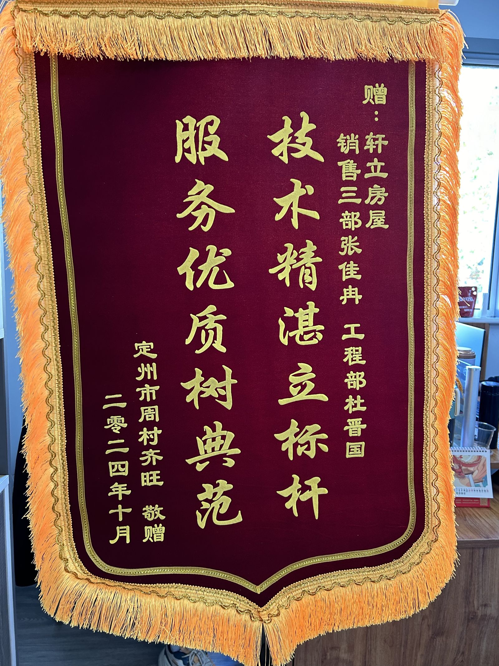 這面“技術(shù)精湛立標(biāo)軒,服務(wù)優(yōu)質(zhì)樹(shù)典范”的錦旗,是對(duì)軒立房屋最好的褒獎(jiǎng)。它不僅是對(duì)軒立建設(shè)的輕鋼房屋的肯定,更是對(duì)未來(lái)持續(xù)進(jìn)步的鞭策。在軒立,我們始終相信,每一次用心的服務(wù),都能為客戶(hù)帶來(lái)超越期待的驚喜;每一份不懈的追求,都能讓家的夢(mèng)想照進(jìn)現(xiàn)實(shí)。未來(lái),我們將繼續(xù)秉承匠心精神,以更加優(yōu)質(zhì)的服務(wù)和技術(shù),為更多家庭筑造幸福美好的家園。